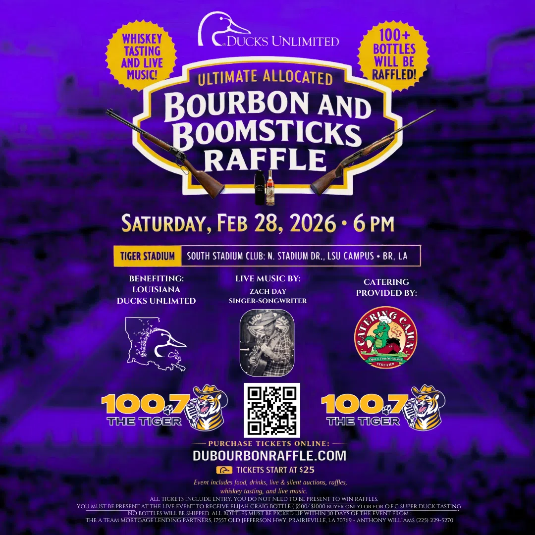 Valentine's Staycation at L'auberge Hotel and Casino Baton Rouge Post Malone and Jelly Roll LIVE in Tiger Stadium Ticket Giveaway Morgan Wallen Flyaway Trip Giveaway Priscilla Block Ticket and Meet & Greet Giveaway Free Car Payments for a Year Marcus King Band Ticket Giveaway Locke Meredith Injury Lawyers Hometown Heroes Nomination Hot Wheels Monster Trucks LIVE Ticket Giveaway Bulls, Bands, and Barrels Ticket Giveaway Zach Bryan Ticket Giveaway Jon Pardi Ticket Giveaway Ducks Unlimited Bourbon and Boomsticks Raffle Ticket Giveaway Josh Turner Ticket Giveaway Hank Williams Jr. Ticket Giveaway Zydeco Hockey Ticket Giveaway Show Us Your Rack Bailey Zimmerman Ticket Giveaway Brittany Rose's Second Date Update